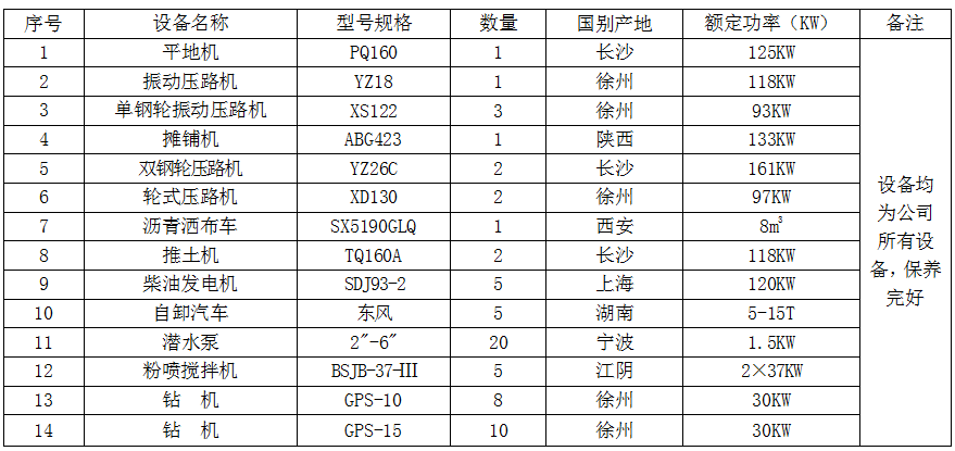 市政公用工程专业为本公司主项资质,近几年发展较快,在无锡地区取得了较好的成绩,在市政公用工程专业施工方面投入的主要设备有: